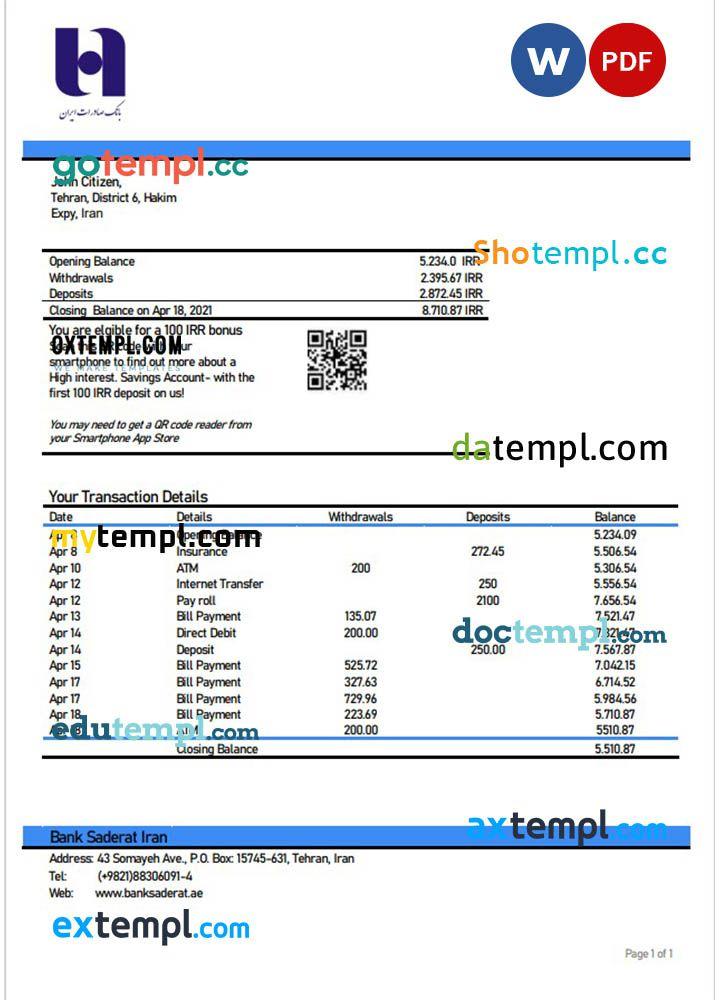 sample Iran Bank Sederet Iran proof of address bank statement template in Word and PDF format downlo