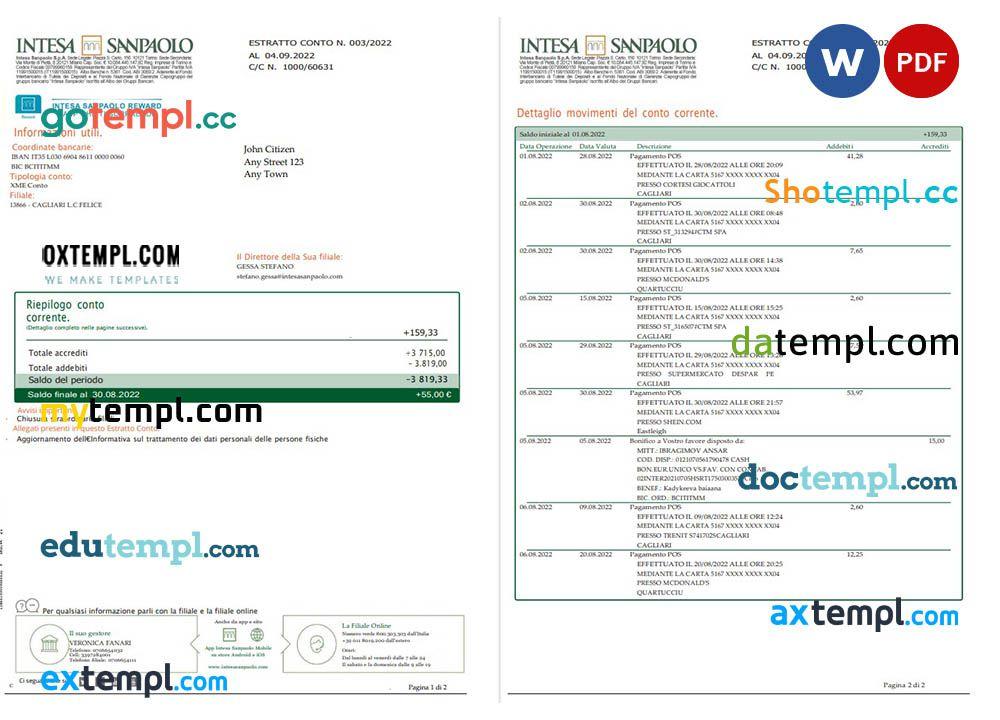 sample Italy Intesa Sanpaolo bank statement Word and PDF template, 2 pages download