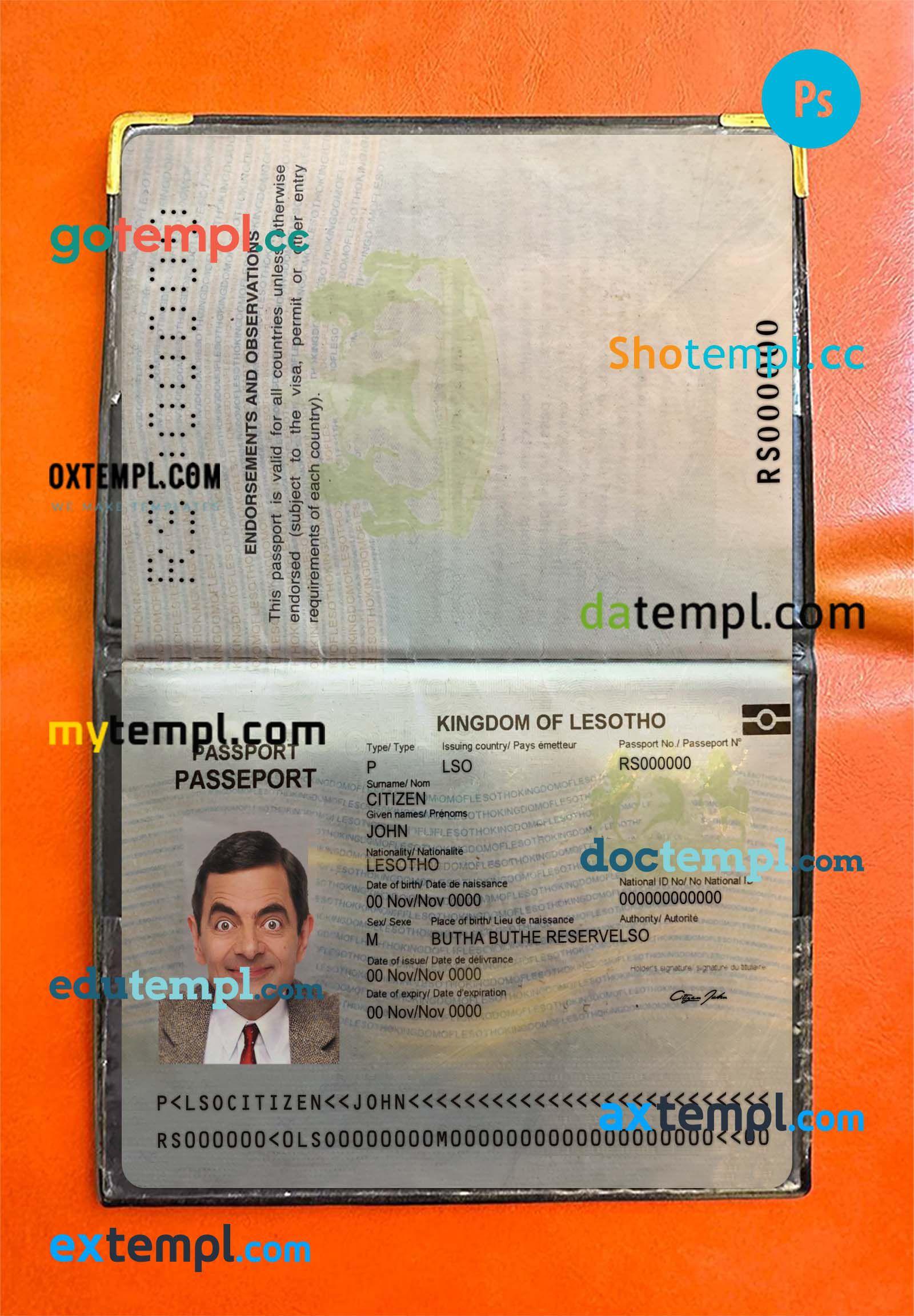 sample Lesotho passport editable PSD files, scan and photo taken image, 2 in 1 download