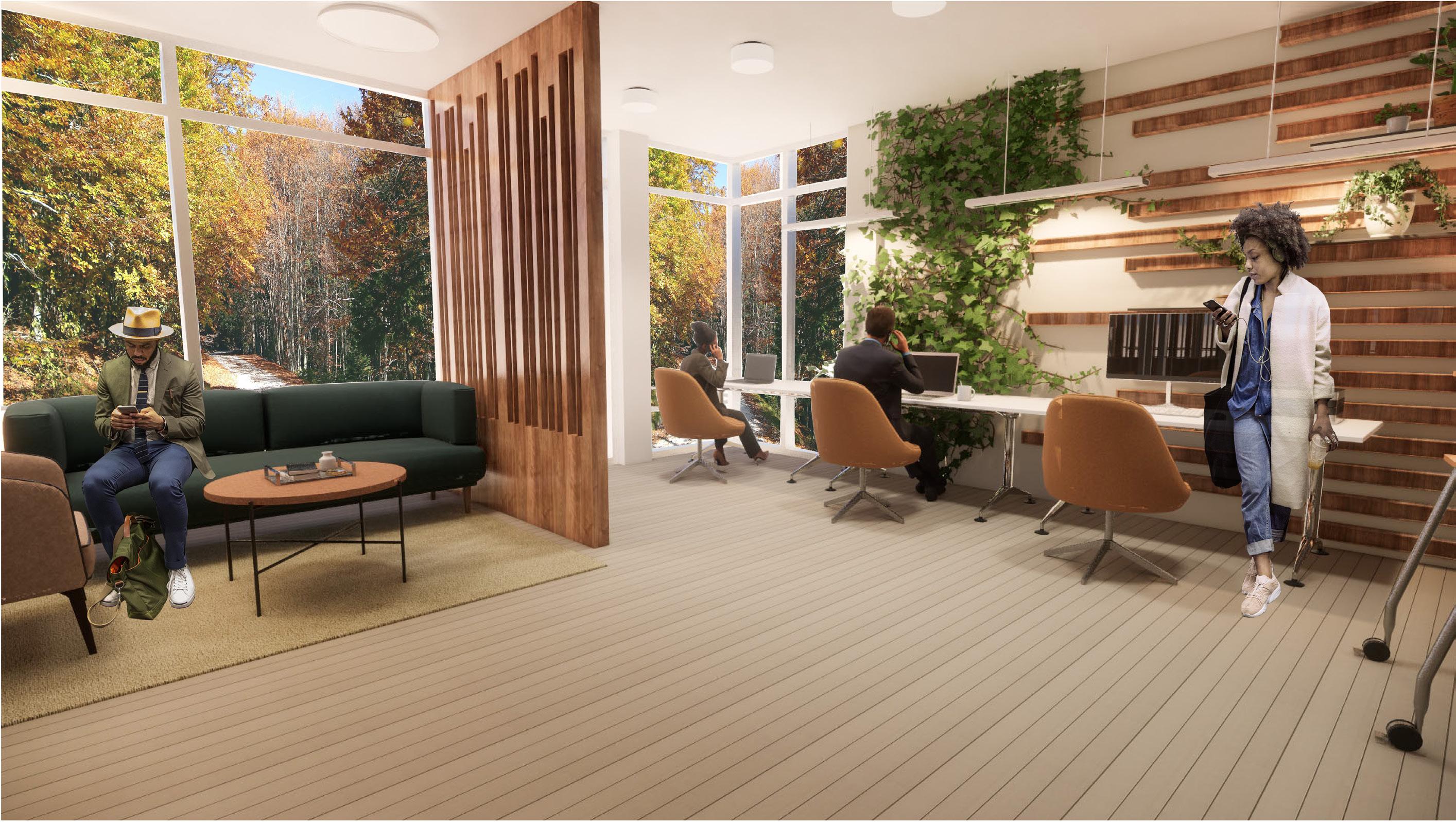 Designing a public space like a coffee hub, in a high traffic area like a college campus, it’s very important to clearly defin paths of travel, have logic layout that is easy to understand and people feel safe in, and use a good contrast to make it easier for everyone to see clearly.