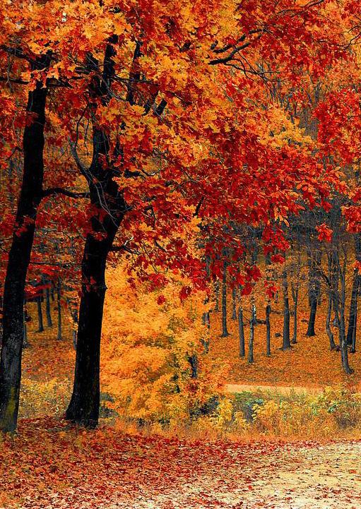 When the leaves are falling gently to the ground. The trees are exceptionally colourful and pretty.