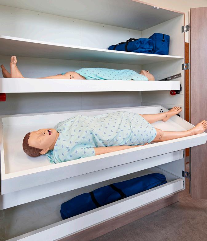 care, such as the importance of communication, collaboration, critical thinking, judgment, and leadership. A combination of group work, instructional, and hands-on learning replicate real life scenarios to develop the students’ comfort level working in typical floor layouts and fundamentals of their practice, such as IV insertion.