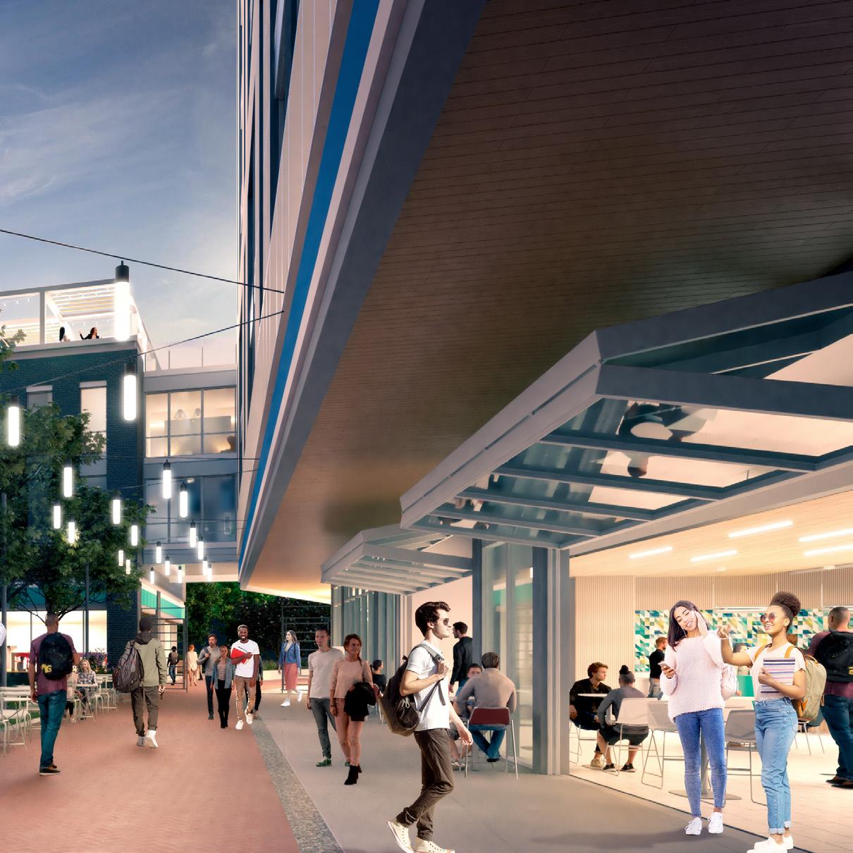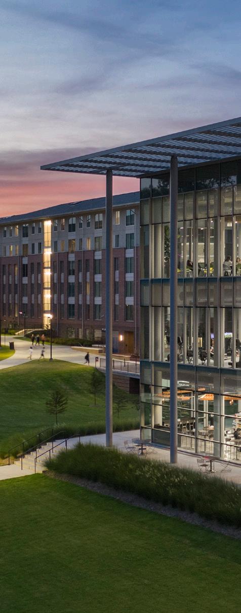 Creating new housing to meet the demand of returning students living oncampus can sometimes lead to distance between the new housing and existing campus amenities. Designing dining and campus services into residence halls helps distribute those spaces and keeps returning students plugged into the campus environment.