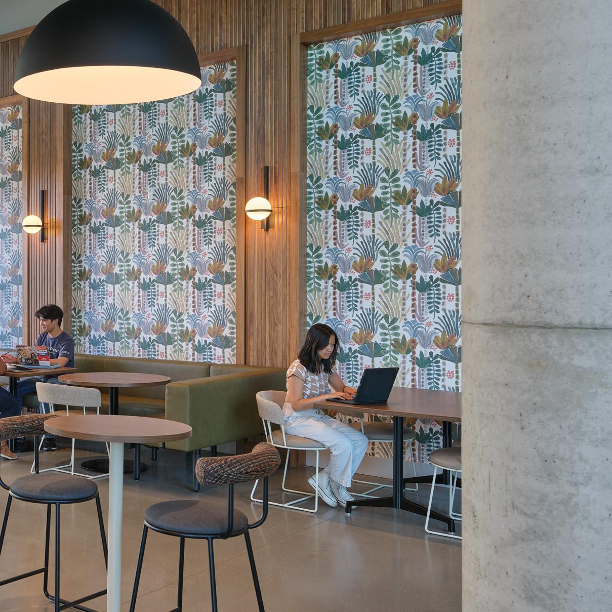 Housing and dining work together to create residential neighborhoods that enhance the vibrancy of the student experience. More than simply cafeterias available at set mealtimes, modern dining halls function as campus hubs that afford students flexibility.