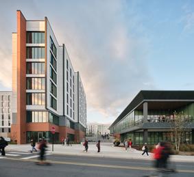 Graduate housing benefits greatly from being located in innovation and mixed-use districts where the activity can aid in recruitment, and the pedestrian focus encourages interaction between students and businesses.