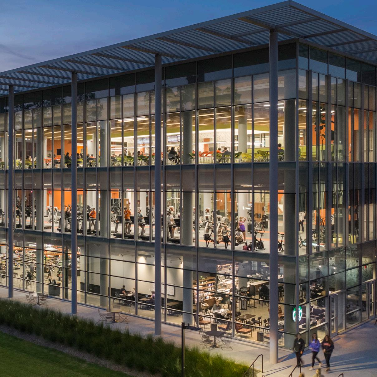 Wellness is an important consideration for any student life space. Bringing visible and accessible fitness, dining, and retail food spaces together near housing creates campus hubs that support the whole student.
