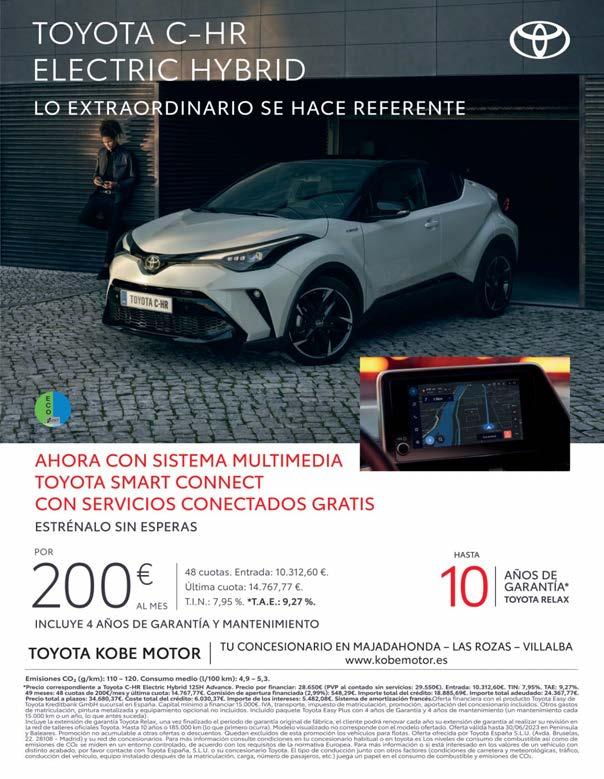 de equipamiento, lo último en conectividad y seguridad, y su eficiente sistema híbrido eléctrico 120H de 116 CV, con tracción delantera (FWD). Esta edición especial se distingue por su color de carrocería exclusivo bi-tono Naranja Kaji y techo solar Toyota Skyview. Cuenta además con el anagrama JBL, llantas de aleación de 17”, faros LED y cristales traseros oscurecidos.