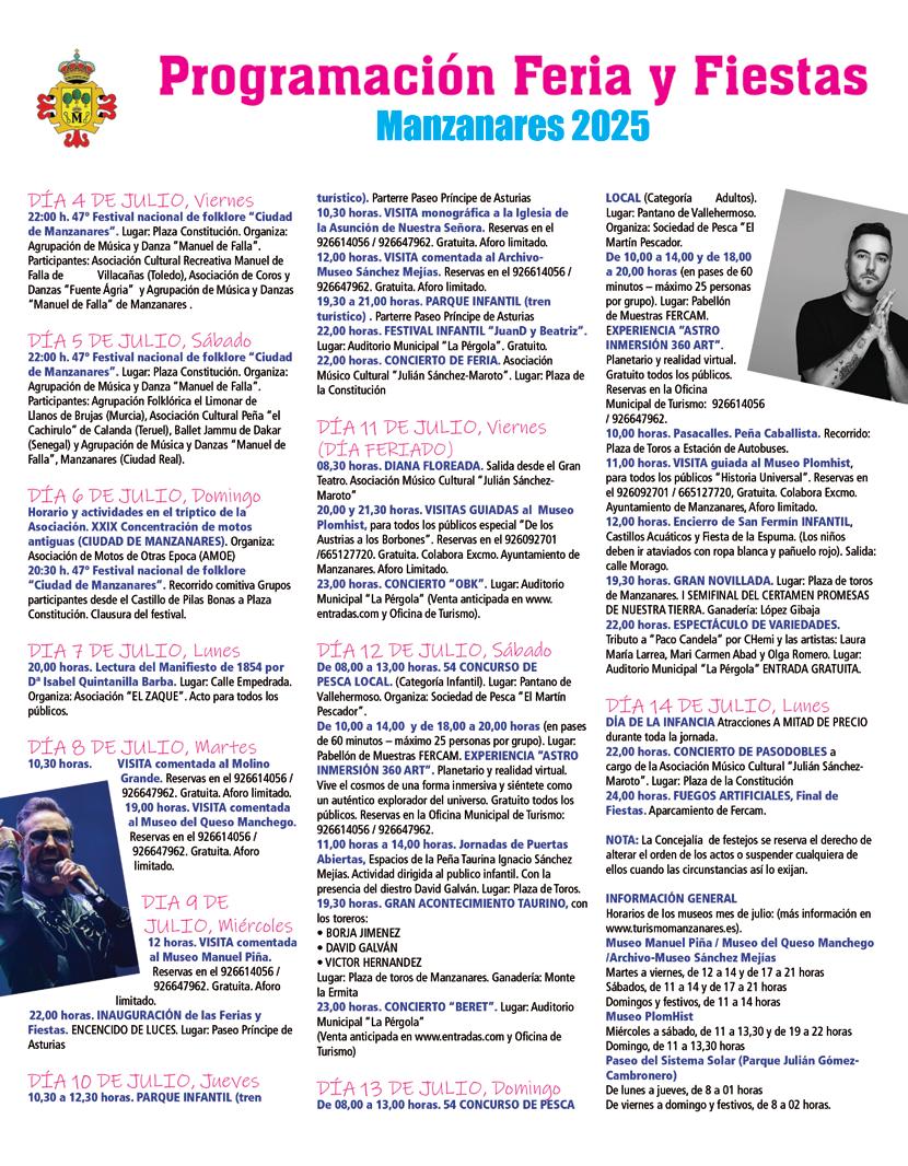 Reportaje. Turismo Activo de moda, 4 · El termómetro. La calle opina, 12 · Ayer y hoy de... Hermandad Provincial Donantes de Sangre, 14 · Entrevista. Nazareth Rodrigo, Directora General de Asuntos Europeos de CLM, 16 · Nuestra Historia en Femenino Plural. “Juliana Morell”, 18 · Desde la Junta y la Diputación, 20 · Actualidad de Manzanares, 22 · Actualidad de La Solana, 32 · Actualidad de Membrilla, 35 · Actualidad de Valdepeñas, 36 · Actualidad de Moral de Calatrava, 41 · Actualidad Económica, 42 · De todo un poco: Viajes, Gastronomía, Decoración, Motor..., 44-50