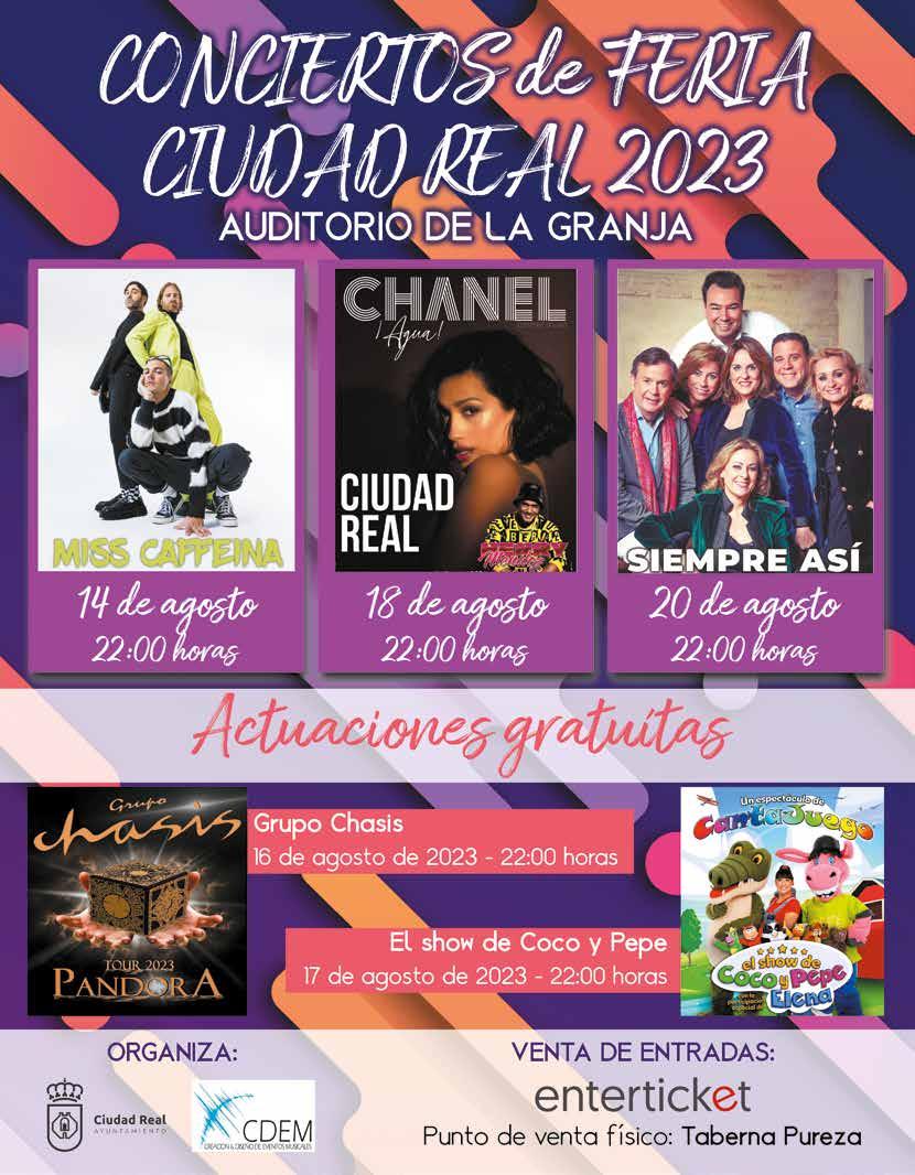 Los Secretos, Miss Caffeina, Chanel, Víctor Manuel y Siempre Así pondrán la nota musical en los principales conciertos de la Feria y fiestas 2023 de Ciudad Real en honor a la Virgen del Prado. Este año nos dejamos llevar por el ritmo y el baile de los espectáculos que han dejado huella en nuestra ciudad, hacemos un repaso por la organización y preparativos de un espectáculo, de los espacios disponibles…, este año cantamos y bailamos a ritmo de feria.