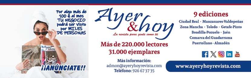 3 Manzanares-Valdepeñas Abril 2024 OPINIÓN/ CARTA DEL EDITOR Ayer&hoy pertenece a CLABE, Club Abierto de Editores Publicación controlada por PGD Esta publicación no se hace responsable de las opiniones de sus colaboradores, los cuales las aportan a título personal. La opinión de Ayer&hoy se refleja exclusivamente en la Carta del Editor y en las informaciones firmadas por la propia revista.