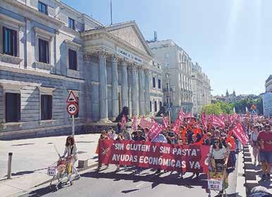 La marcha, a la que asistieron cientos de celíacos y sensibles al gluten, comenzó frente al Ministerio de Sanidad y finalizó frente al Ministerio de Economía.
