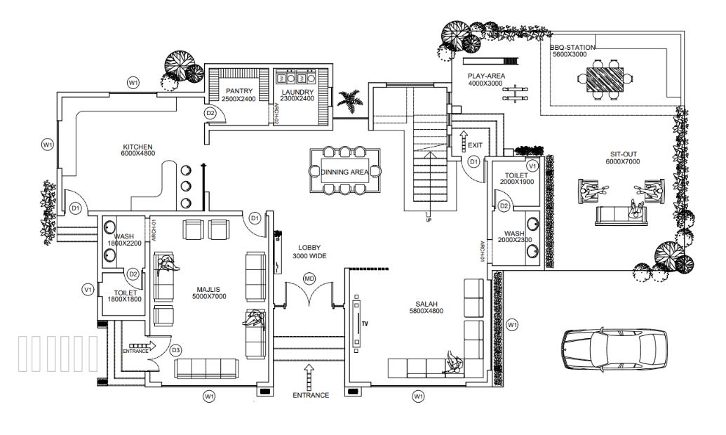 The idea was to design a villa with integrated spaces, it has formal living room with separate entrance. The main focus while designing is to emerge the modern design with local housing requirements. All the interior spaces are well ventilated and captured maximum daylight. A vast outdoor area for the informal activities.