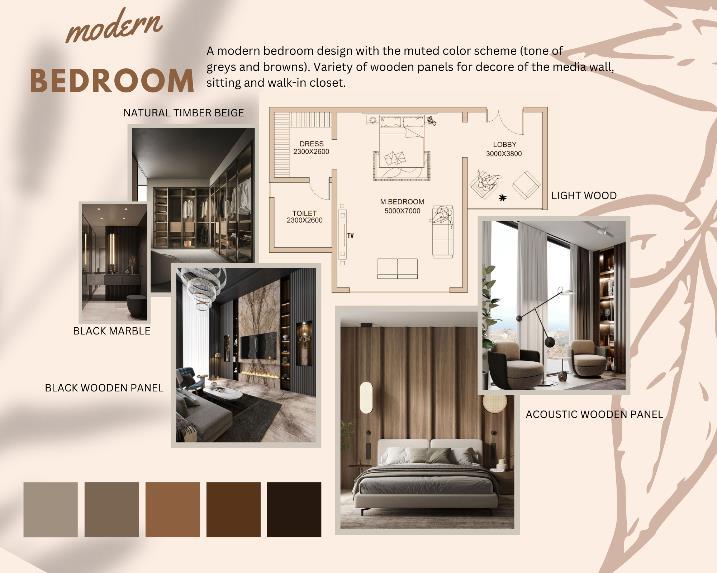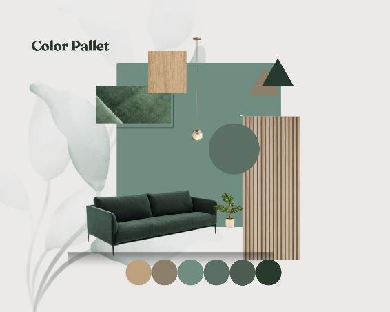 Moodboards are the essential tool for brain storming sessions, The collage of picture illustrate the design harmony and cohesion between the color scheme, furniture and design as well.