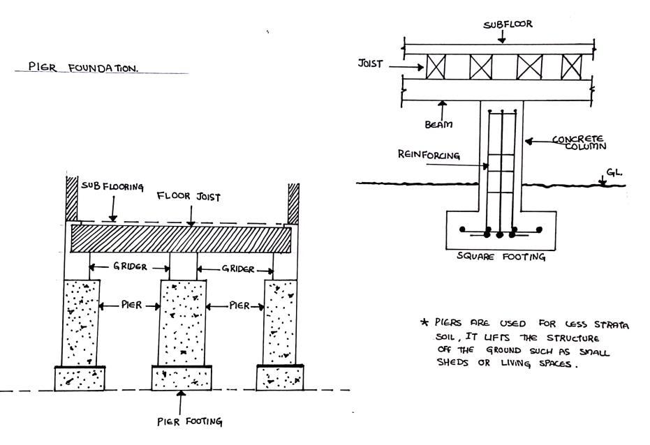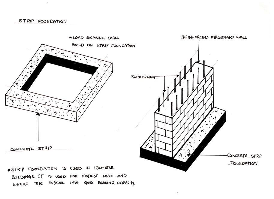 Various types of foundations and structures learned during the course work. Created into architectural sketches.