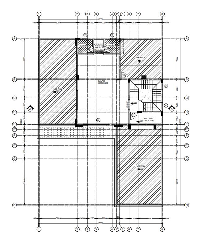 Double-storeyed house for family of 6, that have a formal and family living room, a guest room, master bedroom and 3 secondary bedrooms. There is services space that contain, maid room, laundry and storage. Penthouse is designed with living area and restroom. A convertible space (terrace) that can be convert to room in in future.