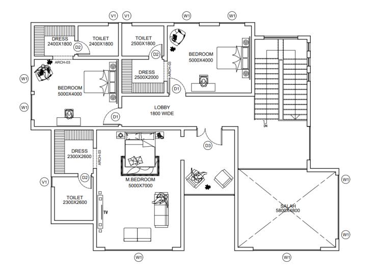 Electrical layout for the villa, calculation of items required according to size of space. The main line distribution from the nearest neighborhood. Different types and size s of the lights as per the nature of space.