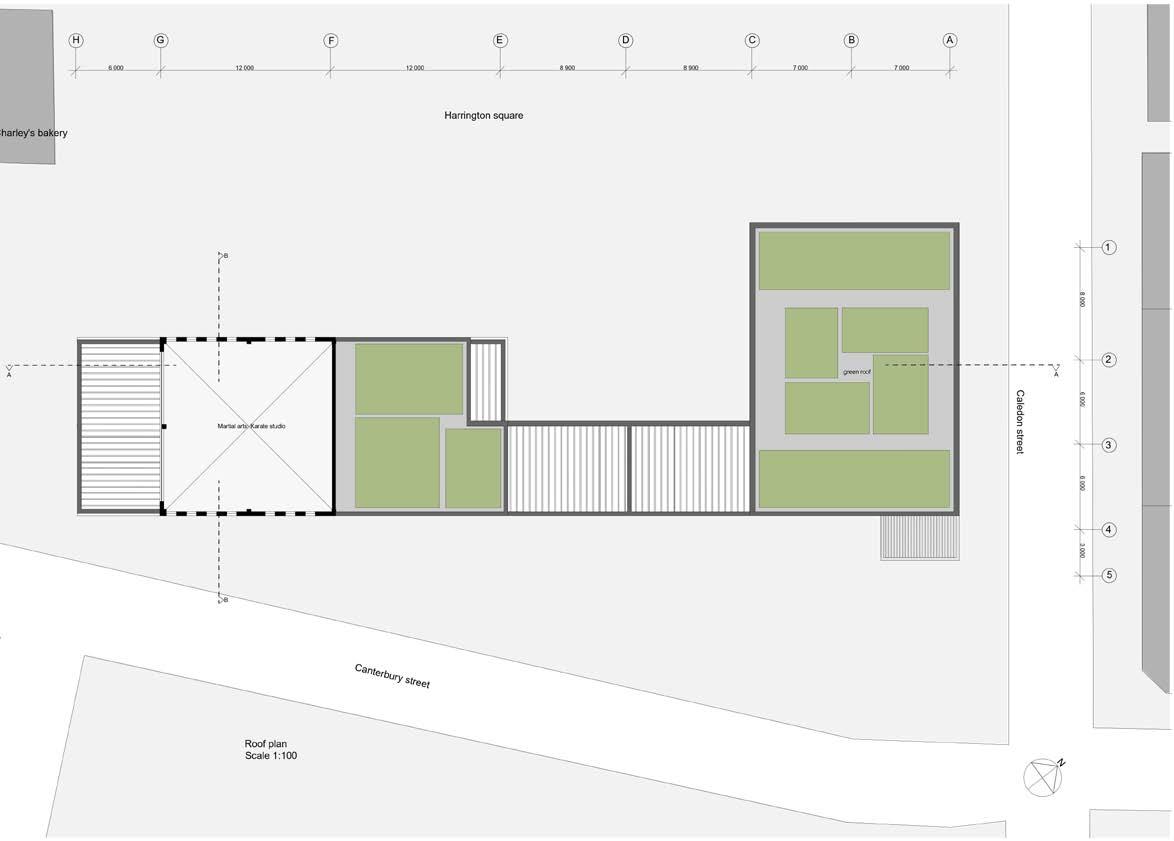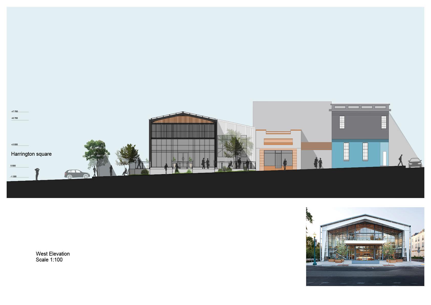 West Elevation Scale 1:100 Nude Foods alley +7 700 +6 700 +3 000 0 000 -1 300 Harrington square A A B West Elevation Scale 1:100 Nude Foods alley Rental space -1 300 +3 000 +7 700 +6 700 0 000 FFL GFL Harrington street square Balcony West entrance A B B West Elevation Scale 1:100