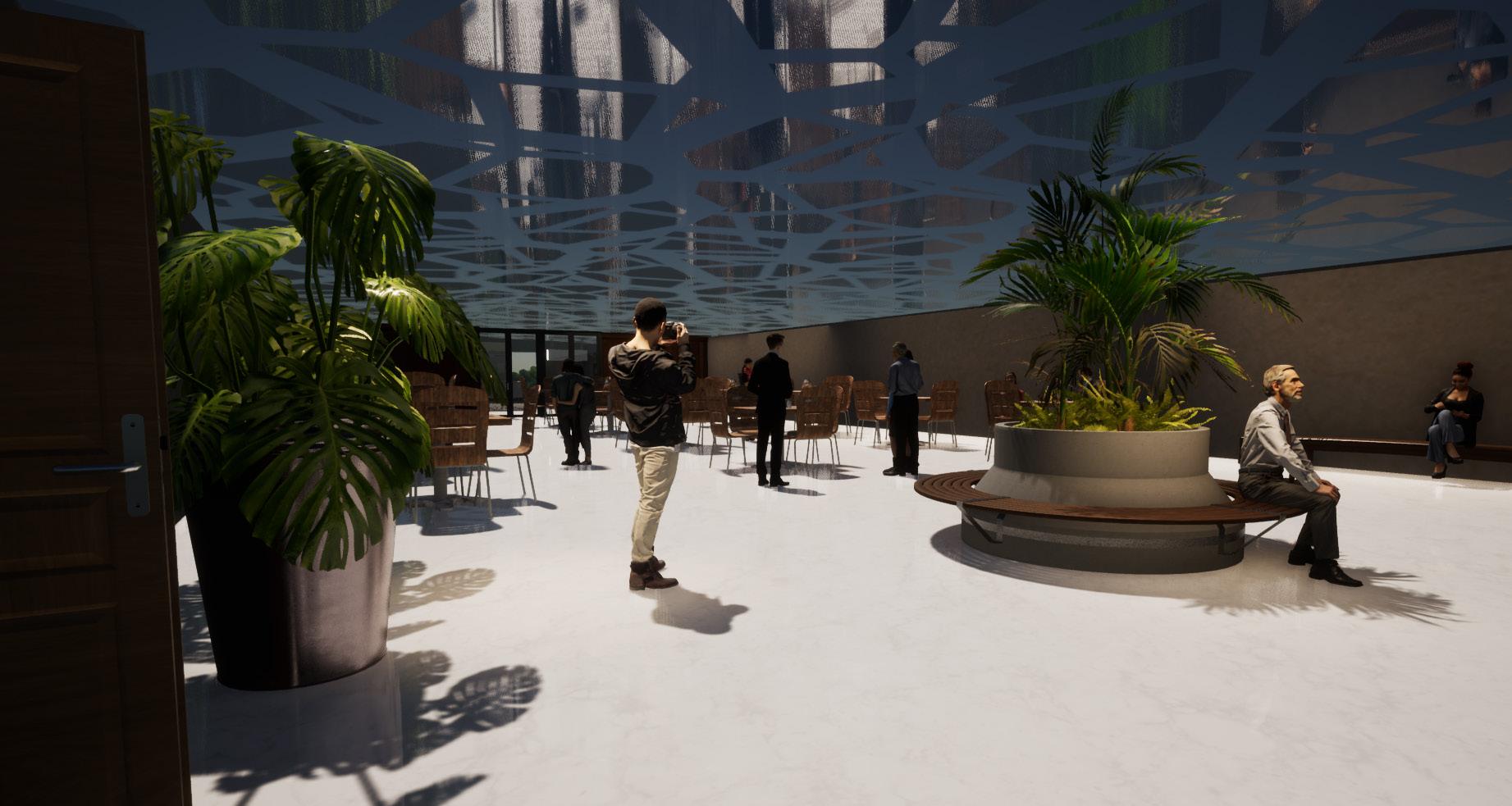 Through techniques such as rectilinear explosion and extrusion of the frames, as well as liquefying parts of the frames to create virtual forms, the way the space is experienced is transformed in the virtual reality realm.