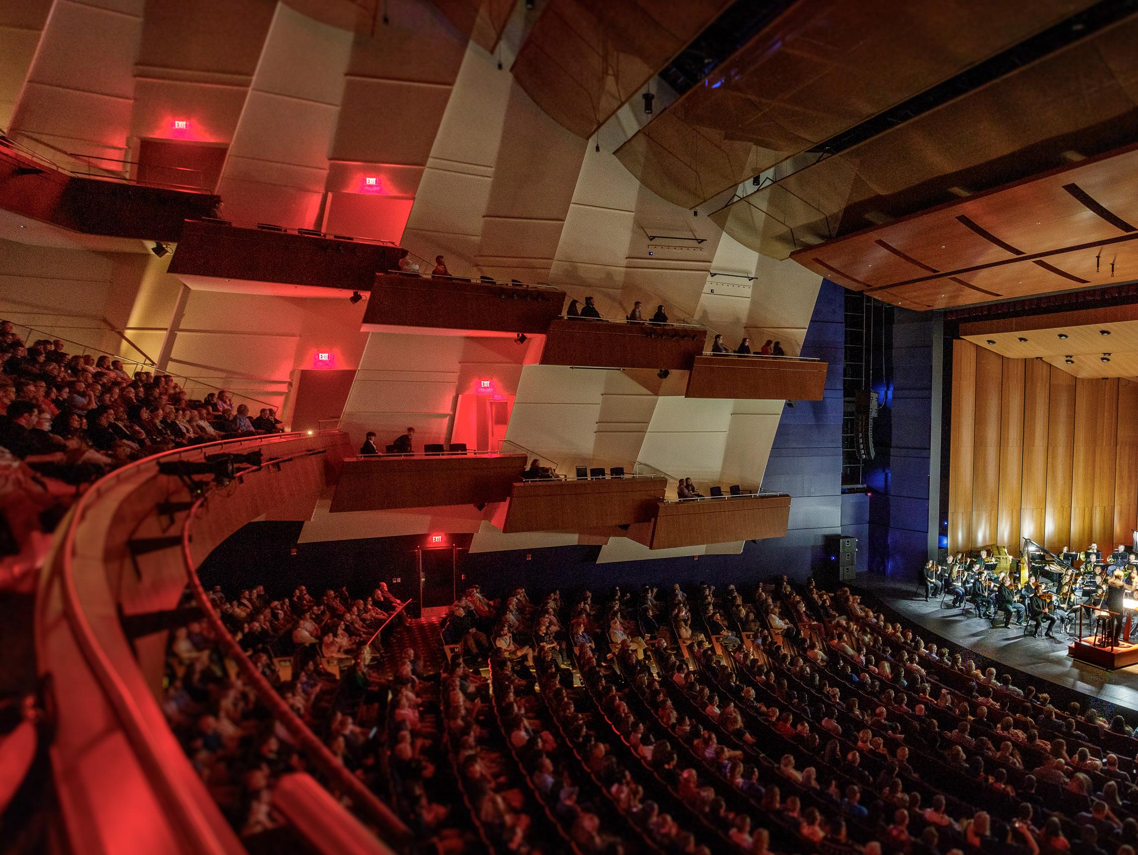 The performance hall was upgraded to include enhanced stage systems, acoustics, lighting and dressing rooms. The project also added a third seating tier to the performance hall, as well as new box seating on either side. Although the seating capacity decreased from about 2,600 to about 2,200, Rice said the seat positioning has improved.
