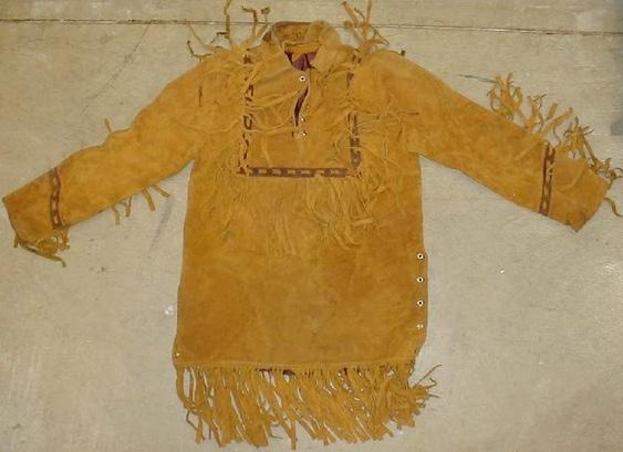 Clockwise from top left: buckskin shirt, Marcia Lenore
