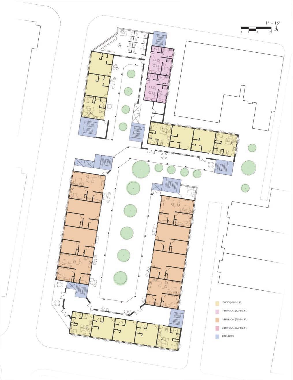 This site is nestled within a close-knit community that is immediately surrounded by another residential apartment and a Giant’s Supermarket. A couple blocks away to the west is the Schukyll River, which the design takes consideration into, as it finds aspects of the sacred greenspaces on the trails and molds it to fit the needs of the residents with the use of courtyards. On the east is the plethera of museusm and instiutions that promote the inclusion of the community, which is a concept similarly embraced within the design.