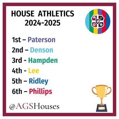 The Brodie events continued this term with the introduction of a new house event – house cricket, where Hampden was victorious This was followed by house tennis where there was a joint 1 place between Denson and Hampden. We then held the highly anticipated house athletics event, which was won by Paterson. Several students set new school athletics records in this event It has been a very successful year in the Brodie for all houses, but it was Hampden and Paterson who came out victorious with a Joint 1 place finish in the trophy – something we have not seen at AGS since 1968 when there were only 4 houses at the school