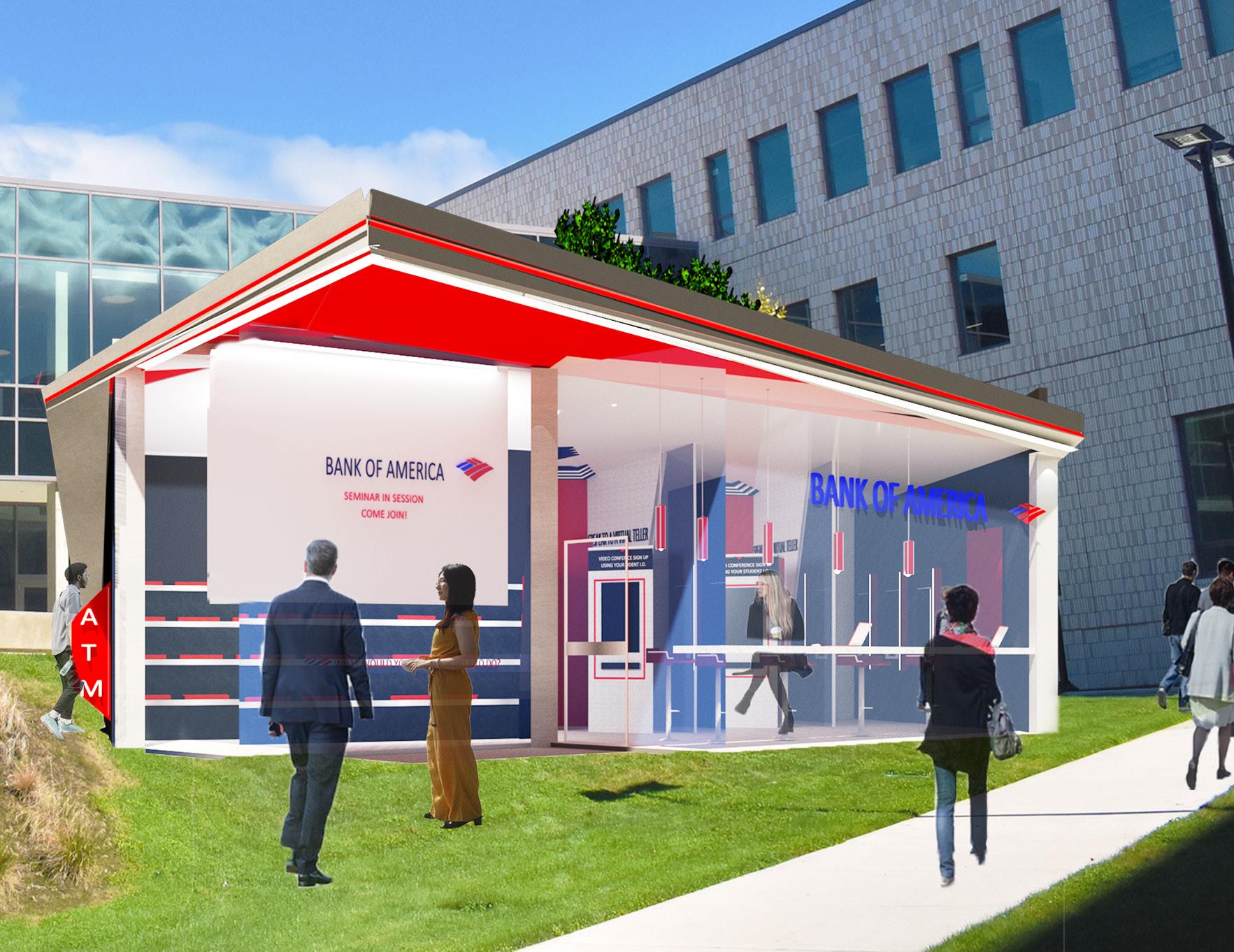 THE INTENT FOR THIS PROJECT WAS TO DESIGN A TEMPORARY BANKING FACILITY FOR A COLLEGE CAMPUS IN A WAY THAT FACILITATES BANKING FOR STUDENTS, WHILE ALSO ALLOWING THEM THE OPPORTUNITY TO BECOME FINANCIALLY RESPONSIBLE AND AWARE.