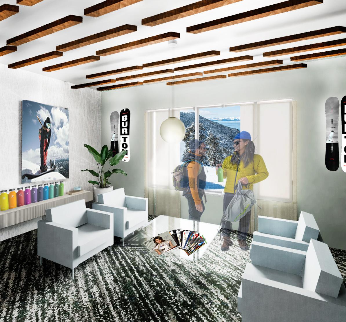 THIS DESIGN WAS INSPIRED BY THE CONCEPT, DISCOVERY, WHICH REFERS TO THE UNDERLYING STRUCTURE OF A MOUNTAIN, USING TONES AND TEXTURES THAT MIMICKED NATURAL RESOURCES FOUND OUTSIDE OF SKI RESORTS.