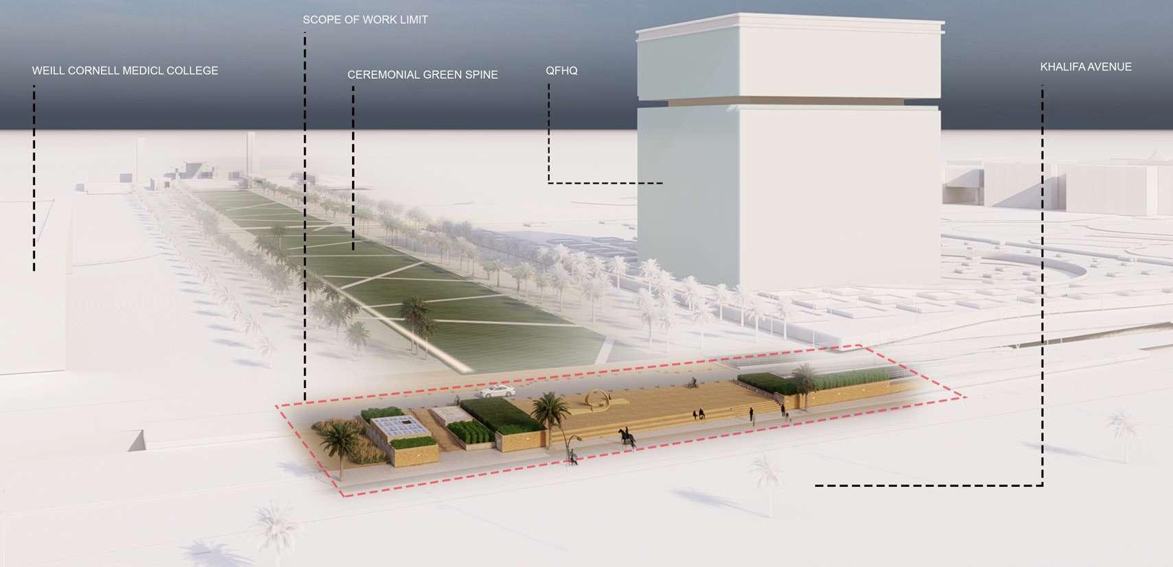 Project breif: Connecting the gaps between existing pathways and landscape. Designing of the path way between Qatar foundation Head Quarters and Al Shaqab equisterian facility. Redesign of connectivity between Khalifa street and ceremonial court inside education city.