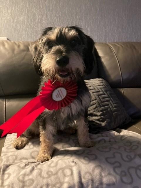 Handsome Teddy (left) is this year’s winner in the pet competition. Here he is sporting his winner’s rosette! Teddy is a 2 year old schnocker who is owned by Jayne Burdon of Prestwick.