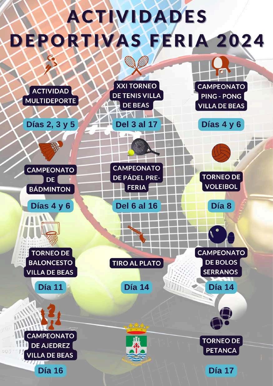 Centrándonos en nuestra Feria destacamos que, los días previos al inicio de nuestras fiestas, contaremos con variadas y diversas actividades entre las que recalcamos las más de diez actividades deportivas; la contrastada Feria de Asociaciones, que servirá para dar visibilidad a la labor diaria de más de 30 colectivos sociales, poniendo a su disposición un evento que facilite el intercambio de experiencias entre entidades y que sirva de reconocimiento a la tarea voluntaria que realizan; el novedoso Encuentro de Artesanía Rural; la celebración del Día de Convivencia del Mayor o el Festival