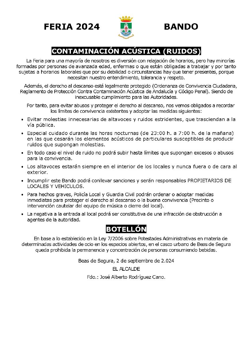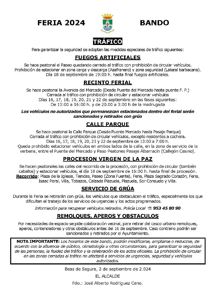 Un año más, en los últimos días de un verano con un amplio programa de iniciativasculturales,deportivasylúdicasdirigidasapersonasdetodaslas edades, celebramos nuestras fiestas en honor a la Santísima Virgen de la Paz, patrona de nuestra villa. Un verano que comenzó, en sus días previos, conlaorganizacióndelexitosoXIXCongresoNacionaldeToroconCuerda, un evento que será difícil de olvidar y del que, desde el Ayuntamiento, no nos cansaremos de agradecer al pueblo de Beas de Segura su implicación, trabajo y esfuerzo desde el corazón y con la pasión hacia una tradición ligada a nuestras raíces que ha demostrado la grandeza de nuestro municipio.