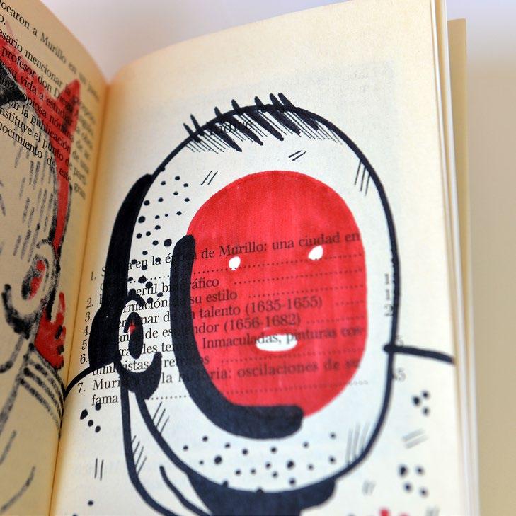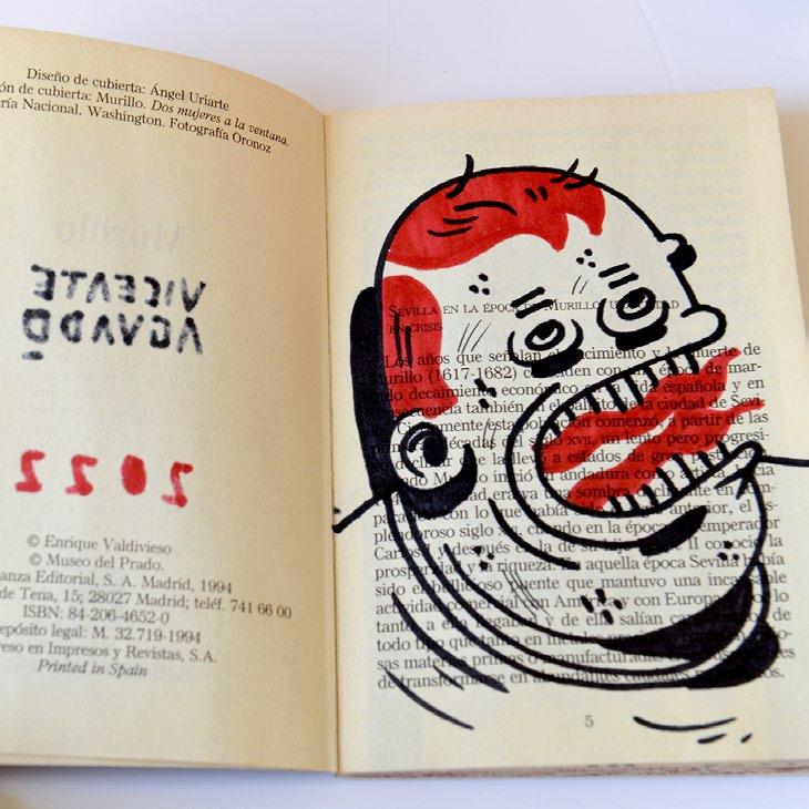 Este libro pertenece a una larga serie en el tiempo, donde utilizo libros ya impresos de todo tipo (texto, literatura, ensayo...) que son intervenidos con mis autorretratos. En esta ocasión, he empleado rotulador y bolígrafo exclusivamente. Los autorretratos muestran diferentes estados emocionales que sufrí en ese momento y no tienen nada que ver con el contenido del libro.