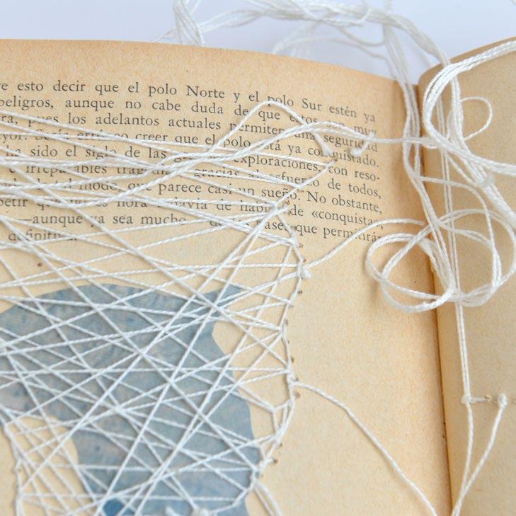 Intervenir un libro, una intervención desde el juego, la ironía... un libro intervenido que ya no puede ser leído, ahora sus hojas manipuladas presentan un juego, una maraña, titulares desaparecidos se juntan con otros titulares de un atlas de los años 80.