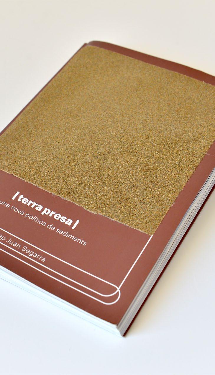 La portada de libro ha sido tapada, en parte, con los sedimentos que se encuentran en la superficie del Delta del Ebro y que configuran la “Platja del Trabucador”.