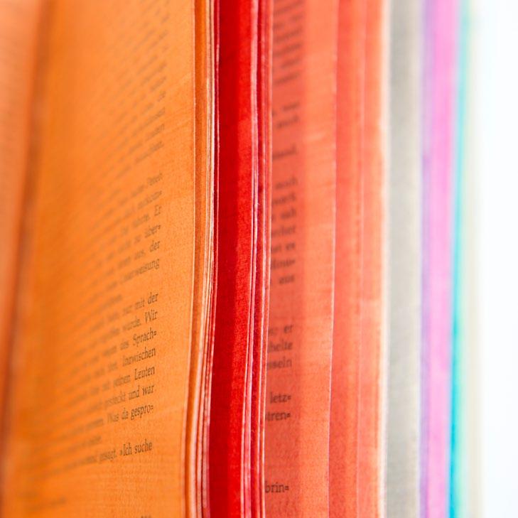 Mezclando los colores primarios cian, magenta y amarillo, he querido crear un espectro en el que se van variando el color y el tono progresivamente. De esta manera, dos páginas funcionan como soporte de un solo color, que van variando gradualmente según vas pasando las hojas, creando un recorrido lineal, intentando que la variación a cada vuelta de página sea lo más sutil posible.