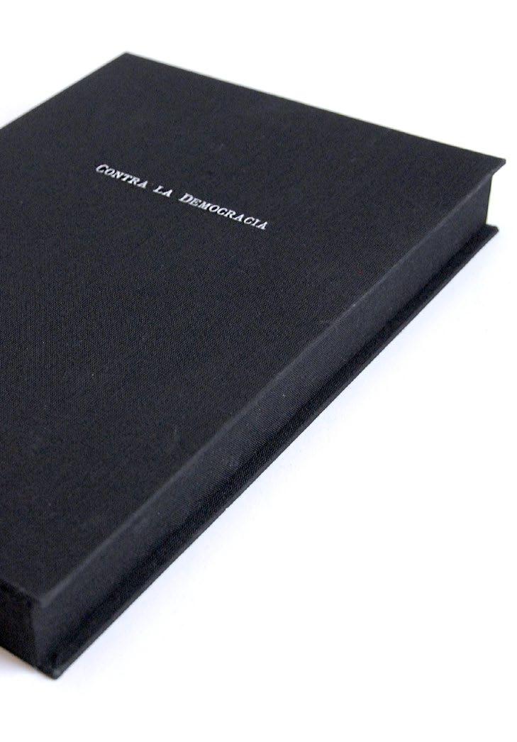 Ejemplar único producido por Democracia, encuadernado en tapa suelta con tela negra y plata. Estuche de conservación de doble bandeja en tela negra y estampado en planos y lomo el título del libro en plata.