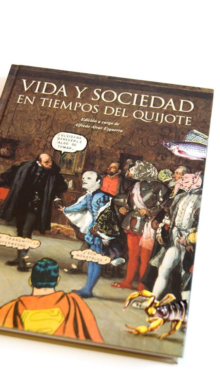 Por esta razón decidí obviar mi primera idea y opte por la más gamberra de cortar, pegar, manchar, recortar etc. un libro sobre la época del señor Cervantes, me resultaba divertido realizar collages con Reyes acompañados de Batman y alienígenas, edificios destruidos por Godzilla y seres similares, o cambiar las caras de personajes importantes de la época por una cabeza de pescado, vamos todo un placer.