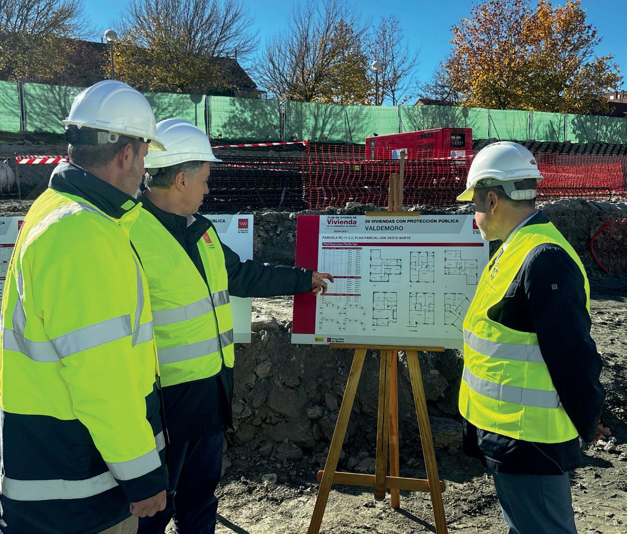 El viceconsejero de Vivienda, Transportes e Infraestructuras, José María García, acompañado del alcalde de Valdemoro, David Conde, visitó el pasado 27 de noviembre las obras de las 39 viviendas públicas en alquiler que se están construyendo en la calle