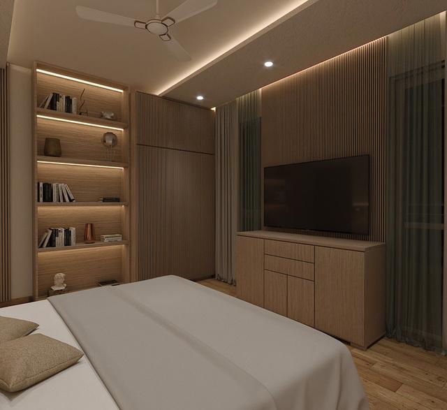 MARBLE FLOORS AND WOODEN PLANKS AND MULTIPLE USE OF UPHOLSTRED BED BACKS FLUTED PANELS
