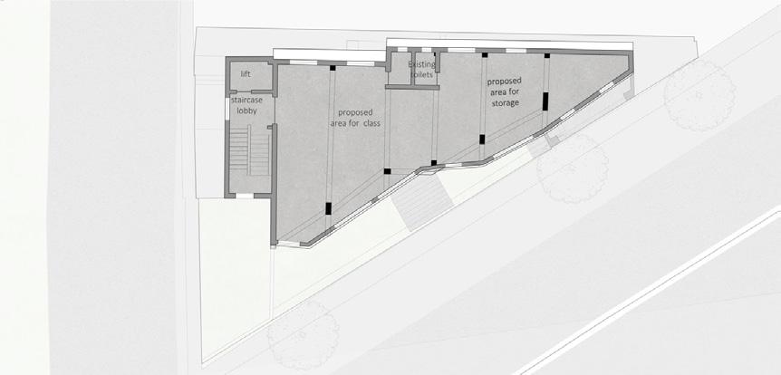 Removal of exisiting wall, flooring, door, window , slab and existing steps to introduce new staircase. Use of debris in classroom steps as filler.