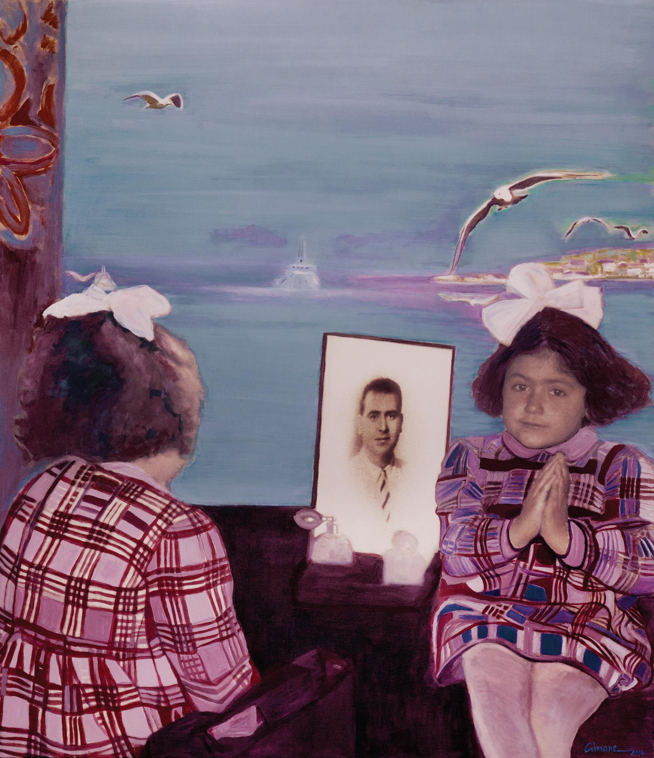 The paintings in Childhood portray the absence of a loved one. In these works, the absent person is the father of a young girl.