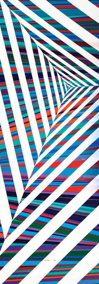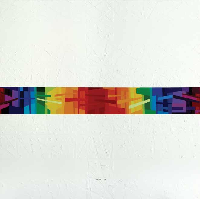 Today, a number of the Arab world’s foremost painters continue to work with geometric abstraction, while a new generation has embraced the transnational progression of the movement, casting an even wider net. As a leading member of this emergent group, Sharjahbased painter Mouteea Murad has exemplified its forward-thinking spirit. In the last ten years, Murad has worked through the history of geometric abstraction as he renews its main facets, particularly the plasticity, relativity, and psychological effects of colour.