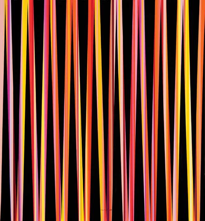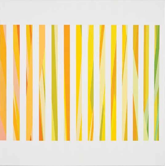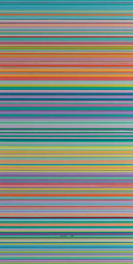 The relativity of colour became increasingly important to Murad as he developed a body of work that concentrates on the visual effects of lines, a subject that has preoccupied artists since the modern period. One of the earliest exponents of colour theory in abstraction was Paul Klee, who referred to his stripes as ‘strata.’ Like a number of artists of the period, abstraction for the Swissborn German painter correlated to music, particularly the rhythmic qualities of colour. Writing on the relativity of colour, Klee’s former colleague at the Bauhaus, Josef Albers, later observed that: ‘As harmony and harmonising is also a concern of music, so a parallelism of effect between tone combinations and colour combinations seems unavoidable and appropriate.’12 Revisiting these essential ideas, Murad’s striped paintings confirm the ability of colour to serve as an affecting detail when hues are placed sideby-side.