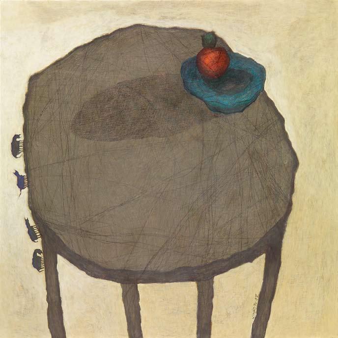 Such frustration is reflected in the tension of his compositions with their carefully chosen subject matter, from still life studies to quasi-mythical portrayals. The dimensional naivety of his works combines with a bold use of color that is contained within lines screaming out in anxiety. While some may feel that AlTurk has achieved a maturity in his artistic expression, he continues to push the limits of his technique within his studio-laboratory.