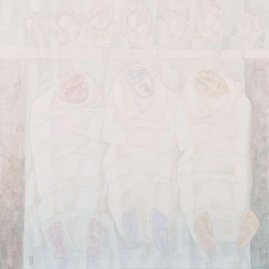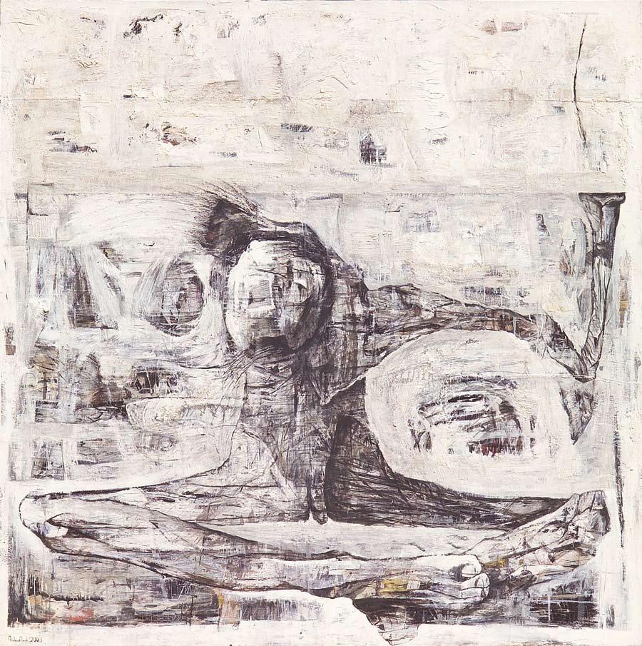 Omar HAMDI 'Crying Against White Extent' 100 X 100 cm. Oil on Canvas 1974