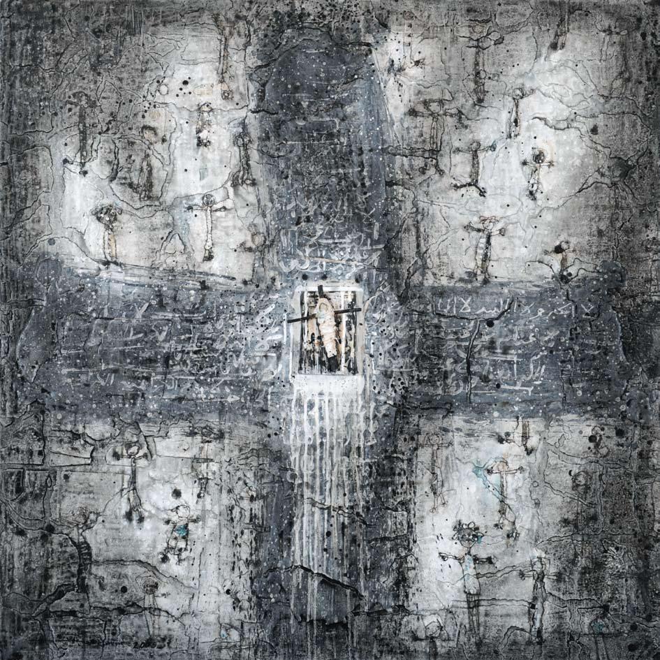 and second place in Ayyam’s Shabab competition for emerging artists. Audiences have been further exposed to his dramatic canvases with a solo exhibition at Ayyam Damascus and in critically acclaimed shows, most notably the gallery’s “Buried in Tradition/My World/Walls Speak.” His works are housed in public and private collections in the Middle East and Europe and have been featured in such noteworthy events as Art Palm Beach and Art Miami in the US.