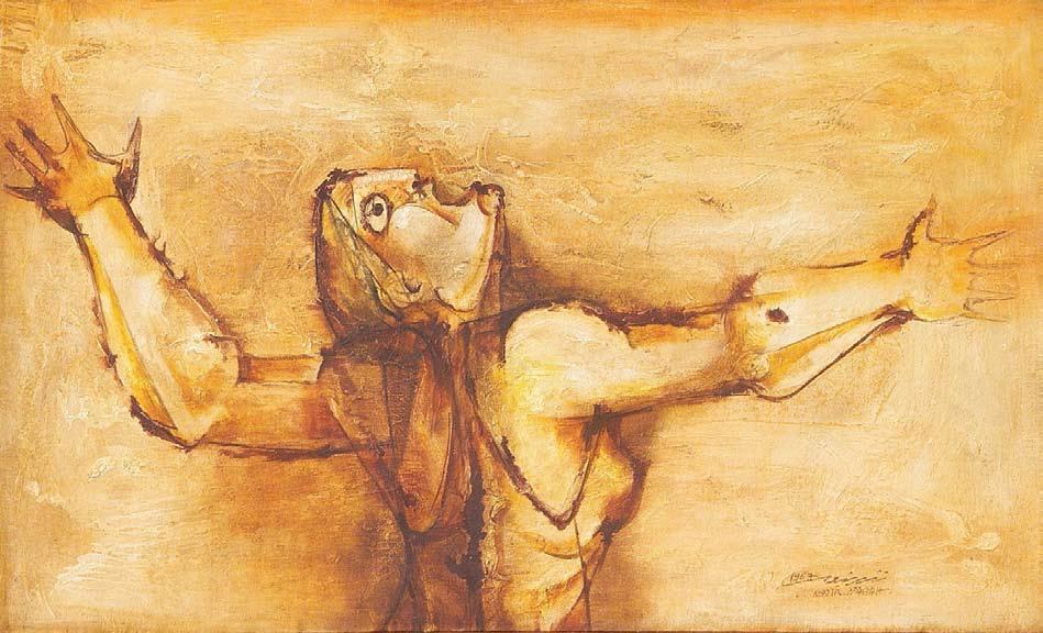 With his place in the local art scene already cemented-he had represented Syria in the 1960 Venice Biennale alongside Fateh Moudarres-he utilized his art to depict popular subjects in compositions that possessed sociopolitical themes, commenting on class struggle and the development of Arab society in the early stages of the post-colonial era.