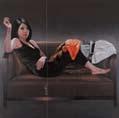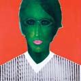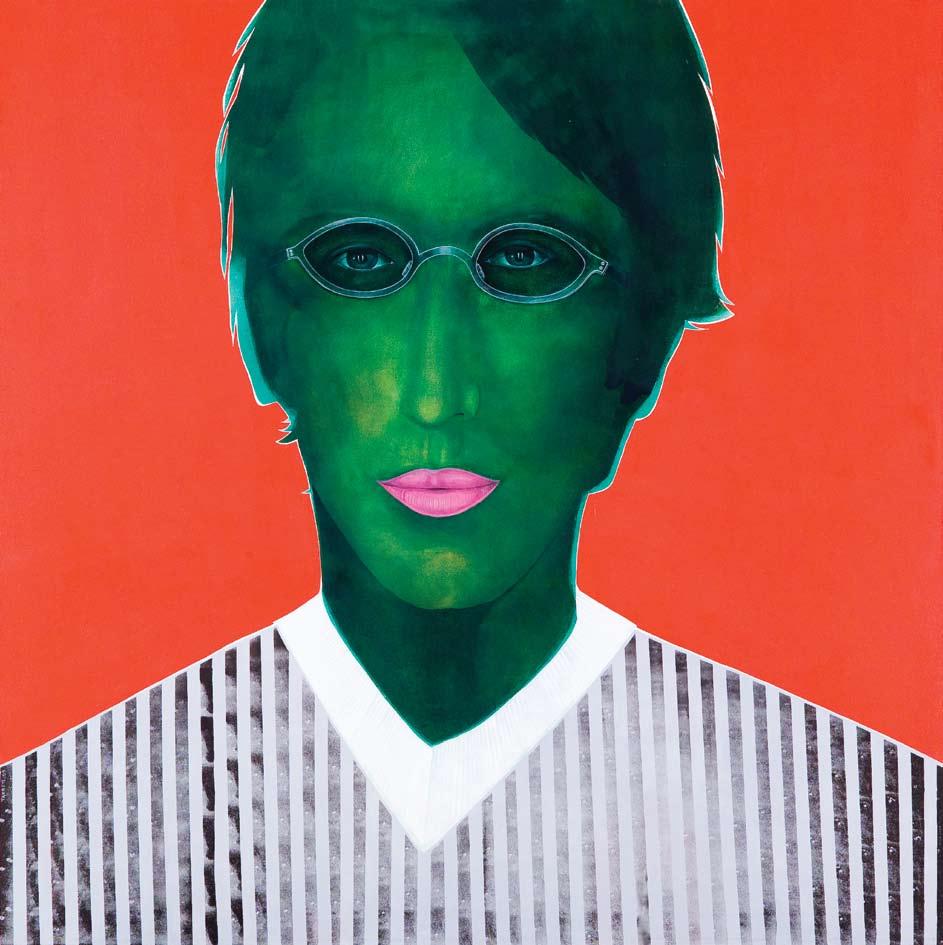 Takreti’s elegant and demure heroines are often elongated figures that although occupying only a small portion of the canvas, have a staggering presence. Positioned against a loud background of solid color fields, his subjects exist within a delicate setting that is executed with meticulous planning, an element that is the direct result of the artist’s architectural training. Thin lines dissect the composition into horizontal and vertical planes, as his fashionable protagonists stare aloofly at the viewer. The artist’s earlier works, which were often portraits of mature women of a particular social background, emanated with a subtle force. His more recent canvases have become increasingly campy and outlandish, with a refreshing sense of freedom that is rare among painters today.