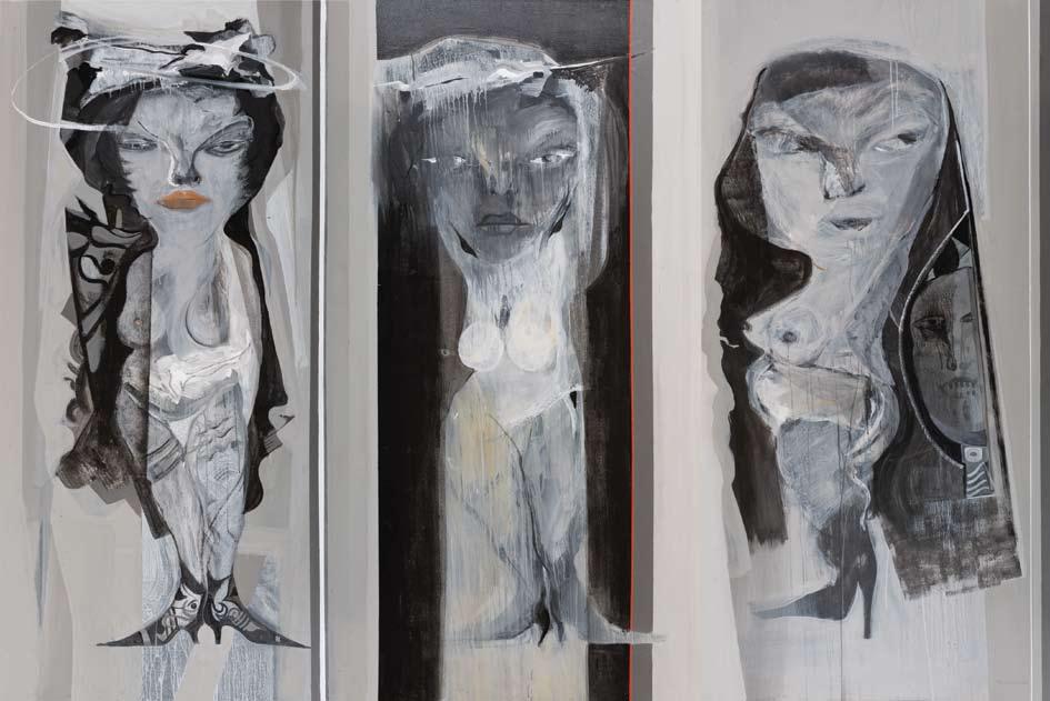 After graduating from the Faculty of Fines Arts in Damascus at the top of his class in 1983, Dahoul went on to receive a scholarship to study abroad from the Ministry of Higher Education in 1987. Choosing to travel to Belgium due to its rich artistic heritage, particularly its 16th century Flemish school of painting, he obtained a doctorate from the Higher Institute of Plastic Arts in Mons in 1997. Since then he has participated in international art fairs and solo and group exhibitions throughout the Middle East, Europe and the US. As such, Dahoul’s art is undeterred by national borders. His style of painting has been inspired by a vast range of art history, including ancient Assyrian and Pharaonic art and European masters such as Hieronymus Bosch and Pieter Bruegal the Elder. Elements of international Modernism and Post-war painting such as the Cubist inspired monumentality of Picasso and the sociopolitical foreboding of Francis Bacon can also be detected. Yet the Syrian artist’s canvases demonstrate a profound originality, namely the formation of his aesthetic through the detailed exploration of a haunting female subject and the continuous awakening of the subconscious.